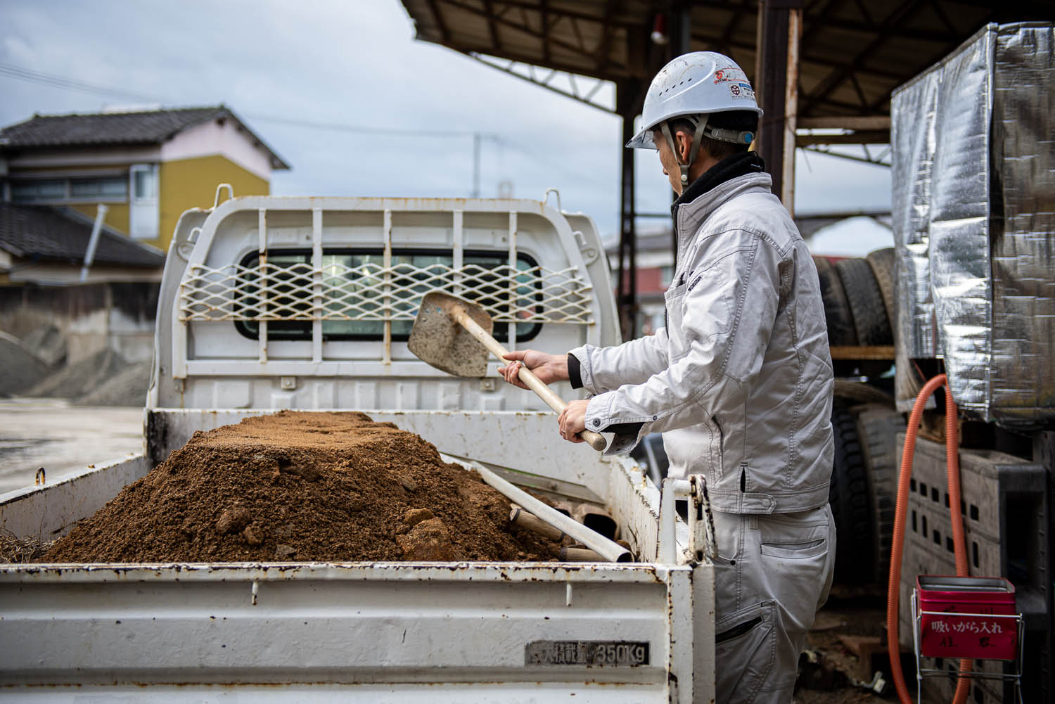 ほこりや粉塵が飛び散らないよう十分に散水しながら行います。