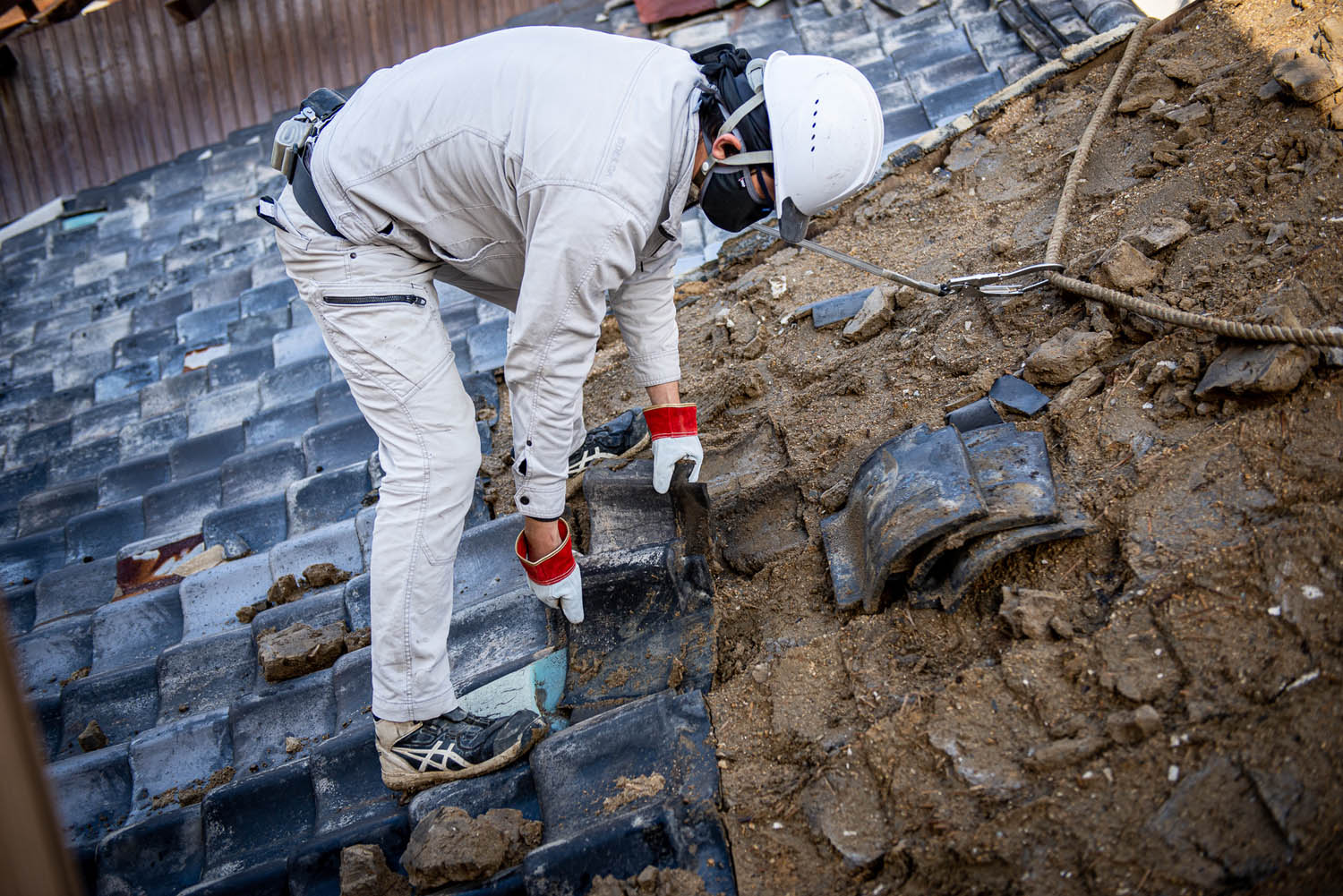 瓦等を手作業で撤去します。