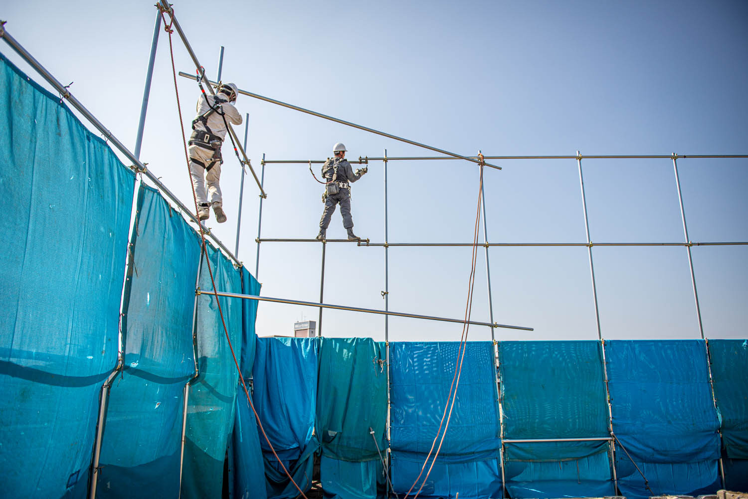 近隣にご迷惑をおかけしないように、足場・シートを設置します。